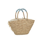 Sac de plage avec fleurs en denim bleu et seagrass naturel