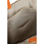 Sac de plage rond en jonc de mer naturel avec fleur en crochet orange.