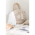 Sac de plage rond avec pompon en jonc de mer et crochet blanc