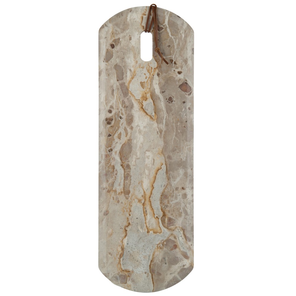 Planche rectangulaire grand format en marbre beige. Dimensions (L × l × H) : 60 × 20 × 2 cm. Poids : 5,6 kg. Couleur : beige. Composition : 95 % marbre, 5 % cuir.