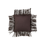 Coussin à franges en cuir marron