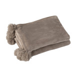 Plaid taupe avec pompons